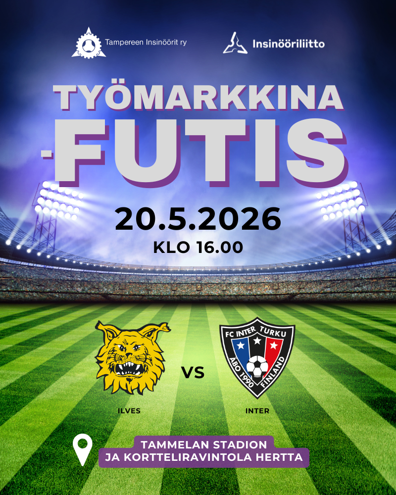 Miten käy, kun Ilves kohtaa Tammelan Stadionilla Interin? Se selviää, kun tulet mukaan Tampereen Insinöörien järjestämään Työmarkkinafutis-iltaan.